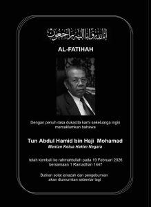 TUN ABDUL HAMID MOHAMAD KEMBALI KE RAHMATULLAH