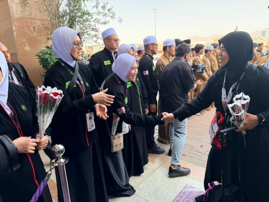 Rombongan jemaah disambut oleh Duta Besar Malaysia ke Arab Saudi, Dato’ Syed Mohamad Bakri Syed Abdul Rahman bersama Timbalan Ketua Rombongan Haji Malaysia, Mohd Ridzuan Wahi serta Konsul Haji Malaysia di Jeddah, Radin Adi Hilmi.