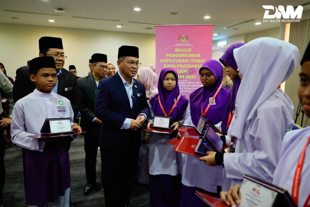 PUTRAJAYA, 26 Nov (IKIM) – Menteri di Jabatan Perdana Menteri (Hal Ehwal Agama), Dato’ Setia Dr. Hj. Mohd Na’im Mokhtar hari ini mengumumkan keputusan Ithbat Kelas al-Quran dan Fardu Ain PraTahfiz (IKP) Tahun 2025, yang disifatkan sebagai detik penting yang dinantikan oleh para ibu bapa dan calon IKP di seluruh negara.