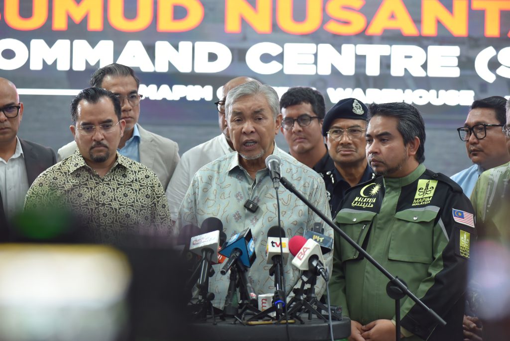 SEPANG, 25 Sept (IKIM) – Timbalan Perdana Menteri merangkap Menteri Kemajuan Desa dan Wilayah, Datuk Seri Dr Ahmad Zahid Hamidi menzahirkan sokongan penuh terhadap pelaksanaan Misi Global Sumud Flotilla 2025 dalam satu lawatan rasmi ke Sumud Nusantara Command Centre (SNCC) yang beroperasi di gudang pusat MAPIM, Sepang, hari ini.
