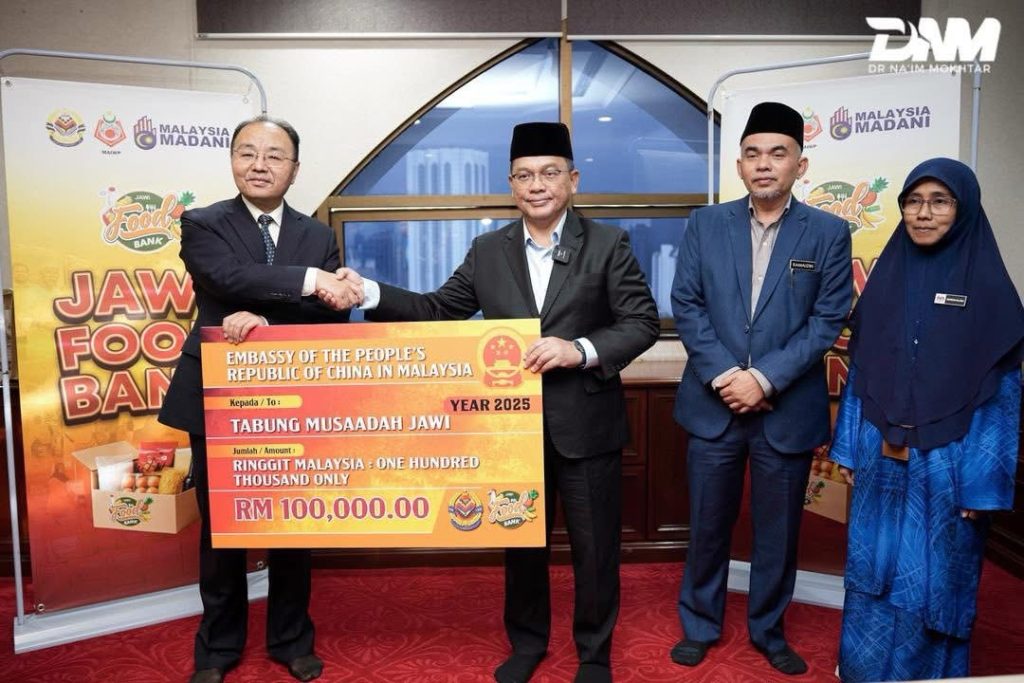 “Sejak tahun 2020, Kedutaan China telah bersama-sama kita menghulur tangan kepada kelompok asnaf, ibu tunggal, OKU, gelandangan dan keluarga B40 dan hari ini, mereka sekali lagi menyampaikan sumbangan RM100,000 kepada Tabung Musa’adah JAWI,” kata beliau.